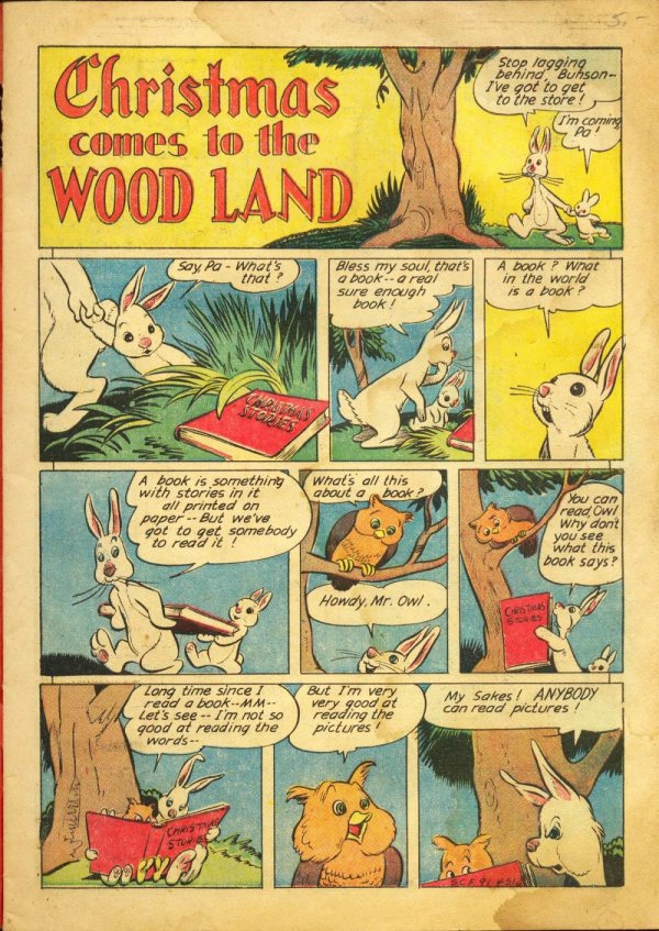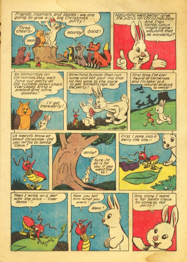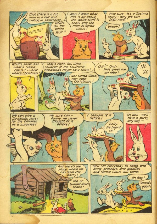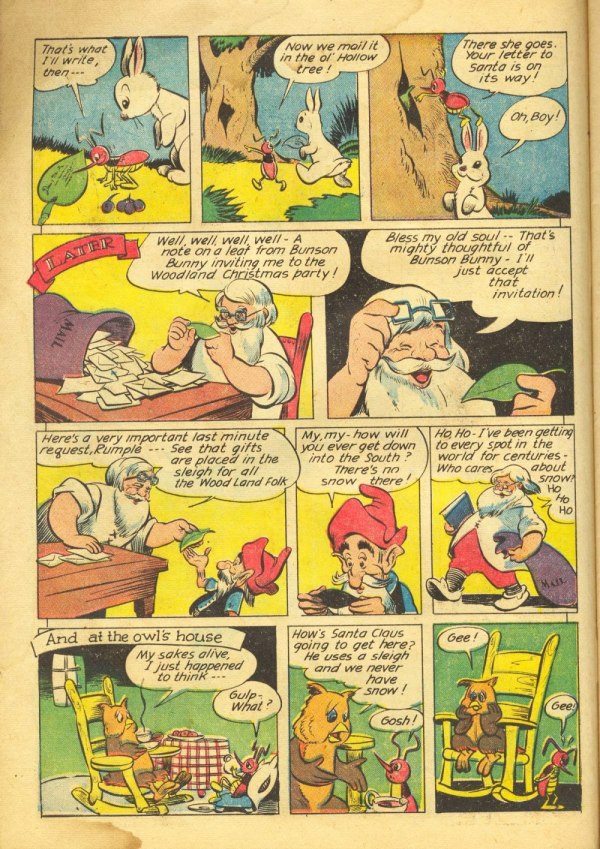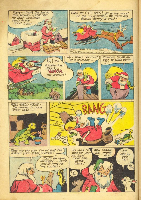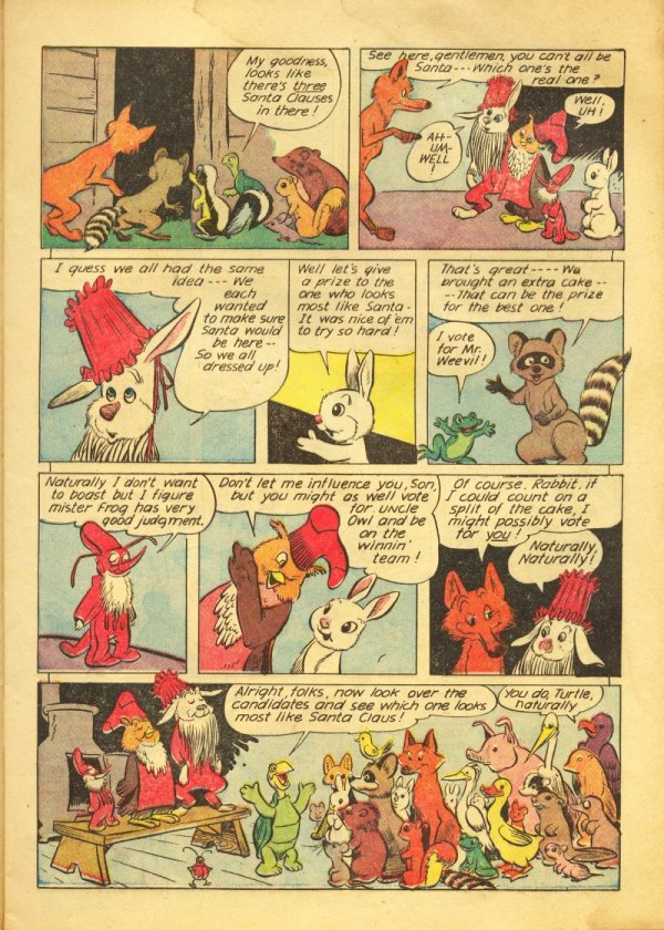 From Four Color: Santa Claus Funnies #91, here’s “Christmas Comes to the Wood Land” by the great Walt Kelly:
